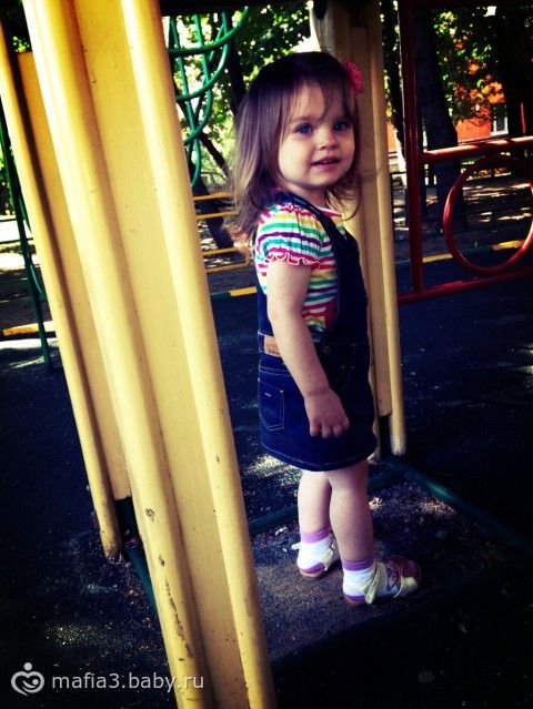 папа нами сегодня гордился: на площадке какой-то мальчик толкнул Алису и отобрал у нее мяч, алиса надула губки, но не заплакала. дальше мальчик начал всякие игрушки-формочки собирать в ведро. в тот момент, когда он отвернулся за чем-то, алиса схватила ведро и побежала, мальчик, хныча, за ней. бежит, плачет, а алиса развернулась и рассмеялась ему в лицо) коварная девочка растет))) пысы мальчик года на 2-3 старше нас.