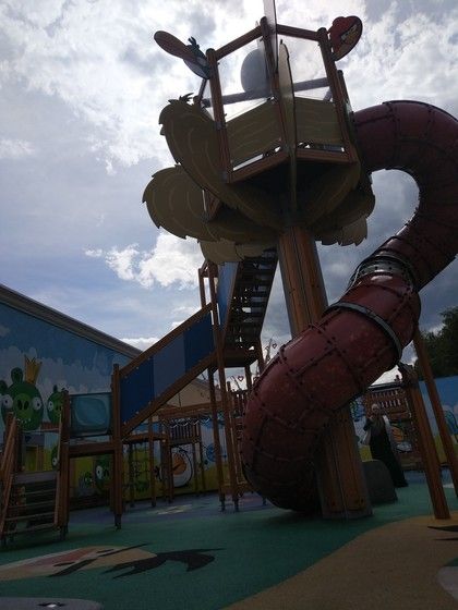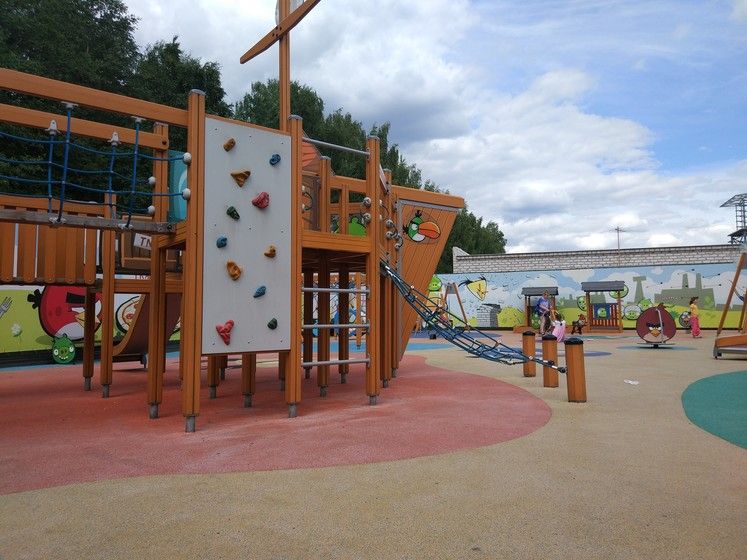 Мои 3.6 и 2 с большим удовольствием обошли ее всю и везде залезли, кроме самой большой горки — поднялись наверх и сообщили что страшно))
