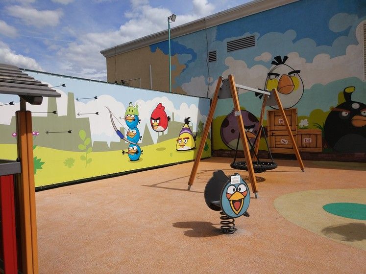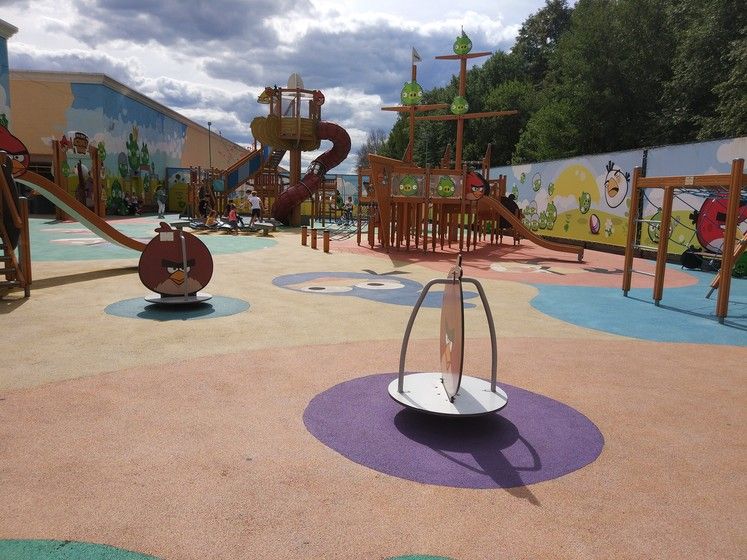 А так там и для более маленьких есть много качелей-каруселей — справа, вполне безобидные)