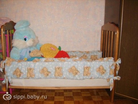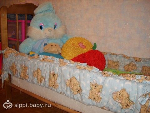 не, я изначально такие не хотела — они мешают хорошей циркуляции воздуха в кроватке и когда малыш начнет попытки встать сам в кроватке, держась за прутики — высокие бортики ему не дадут этого сделать.