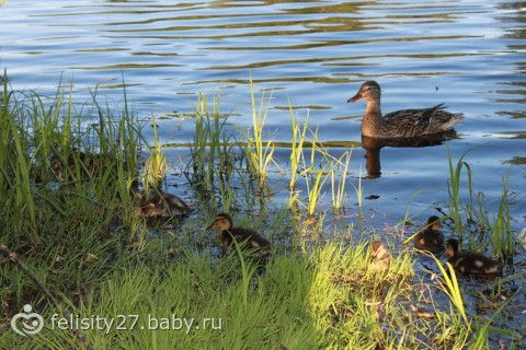 А мы на Ясной в прошлом году вот таких утят с мамой уткой видели(не думала, что они у нас водятся!)! Мы всей семьей отдыхали на берегу, а к нам гости заглянули: