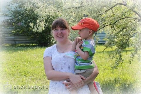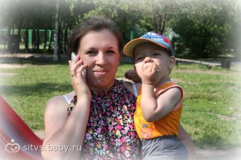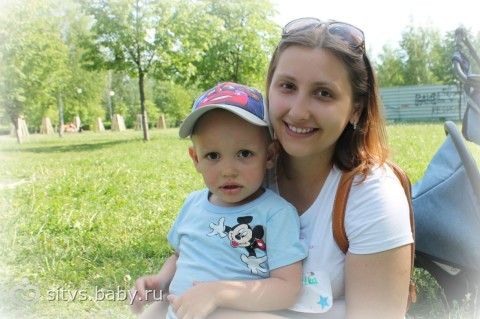 Юля с младшеньким Ванечкой (ему ОЧЕНЬ понравился чей-то пирожок)