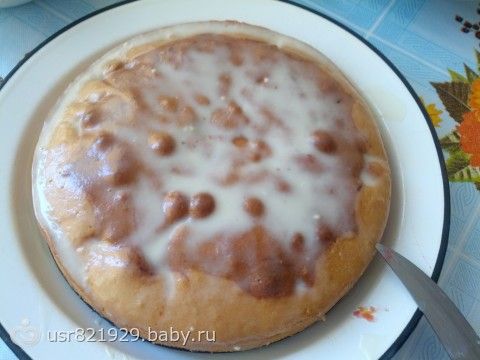 6. Корж остудить, можно разрезать и пропитать, промазать кремом, я просто сверху полила.