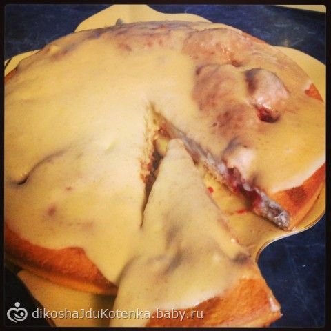 6. Корж остудить, можно разрезать и пропитать, промазать кремом, я просто сверху полила.