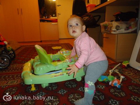 молодцы какие быстро пошла, я думаю скоро пойдет т.к. везде встает хватается одной рукой держиться, равновесие плохо держит в спинке...