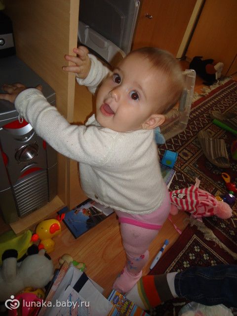такие интересны они в это время, уже сама умеет игратся, бывает не слышно ее… я сразу смотрю где она что она… а она сидит где нибудь в уголке и чтото рассматривает трогает всеми пальчиками… потом на зуб обязатально… оближется и раз и наменя посмотрит и улыбнется… и далъше играть… у меня дыхание останавливается в такие минутки.....