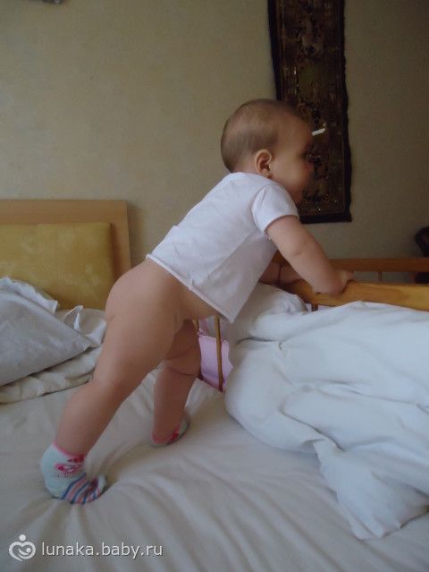 везде где может берется и поднимается стоит, я уж боюсь в кроватке оставлять вдруг головой вниз пойдет… деть мой страха не имеет… летать так летать, бьётся головой обо всё...