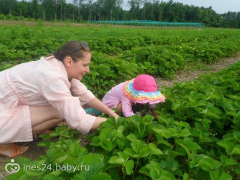 В субботу мы рано-рано утром встали и поехали на ферму, собирать клубнику