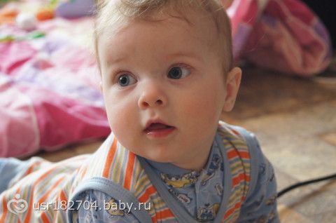 Ну и о наших достижениях. В 5 месяцев и 1 неделю (1 июня) мы начали вставать у опоры. Спустя недельку поползли на четвереньках и через пару дней сели. Короче к 5 с половиной месяцам мы овладели вот такими навыками. Стал сынуля у меня мамин хвостик. Везде за мной ползает карабкается по ногам. А поскольку нас еще пошатывает валится постоянно стукается и плачет. Если сижу на полу рядом то заползает на меня. Надо нам все время стоять. Обнимет меня за шею и стоит ))) Ласковый такой пытается целовать меня засунув себе в рот чуть ли не половину моего лица. Когда меня теряет начинает ныть и получается маааам у него. А так говорить мы научились только ав-ав. Собачка наша потеряла покой потому что теперь на его коврике частенько гостит Альберт )))) Так же добрались уже до мисок. Приходится убирать теперь и кормить и поить по расписанию, поскольку плещется в них сынулик. Объясняю что нельзя на подстилку лезть и трогать провода и стиральный порошок. Это пока наши три НЕ. Вообще много можно про него рассказывать. Такой славный позитивный мальчишка! Все сравниваем с мужем его с дочкой и понимаем что дети абсолютно разные как плюс и минус! Только внешне очень похожи. Ну и если вспомню допишу еще. Завтра идем взвешиваться и на третью гепатитную. АКДС будет позже наверное в середине июля. Так что на сколько выросли потом напишу.