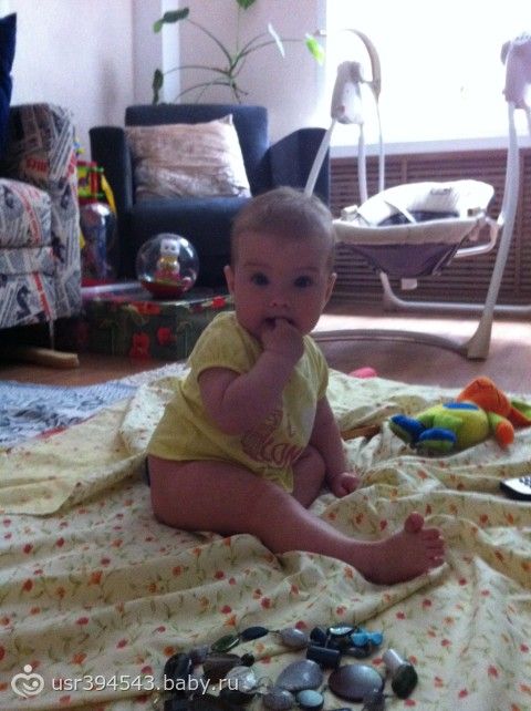 Быстро эти месяцы пролетели))) Доча сидит, ползает, стоит в кроватке, зубиков пока нет))) вот какие мы)))