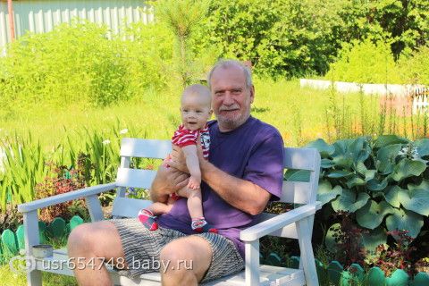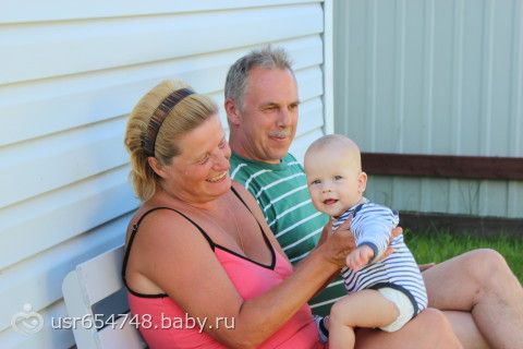 А так мы тут с моей бабушкой:)А в выходные наезжает толпа родных-благо дача у нас большая))))). Купается Пашка вечером в ванне на улице-ему этот процесс очень нравится). Спит ночью отлично! Пытается садиться, ползает уже очень хорошо и быстро))))лезет зубик-всё никак ему не вылезти!