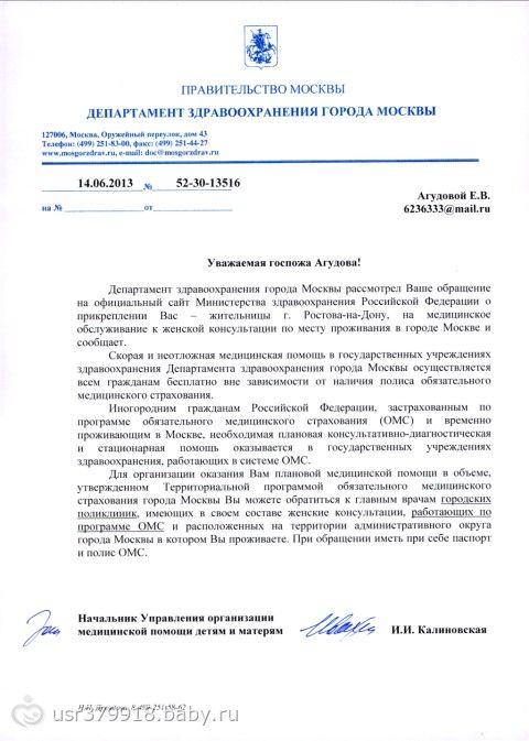 Вы знаете, я перед тем как встать на учёт написала письмо в министерство здравоохранения, и вот какой ответ мне пришёл через месяца полтора (на учете я уже стояла)))
