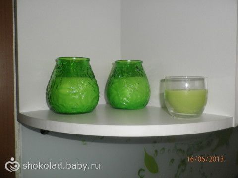 на бардак не обращаем внимания-у меня ж муж там живет)) мы с сыном у мамы, а муж там, красотаааа) вот я посуду мыла, он готовит, я пришла покушала убралась))) купила свечек красивых на полку. мы любим иногда при свечах посидеть поужинать вдвоем, а тут ещё и декор, все в цвет)) все салат))) хочу с верхней полки этого емемдемса убрать и купить ещё таких свечек, мой сказал будет перебор и лучше туда рамку с нашим фото поставить.а я считаю что кухня никак не для рамок место!