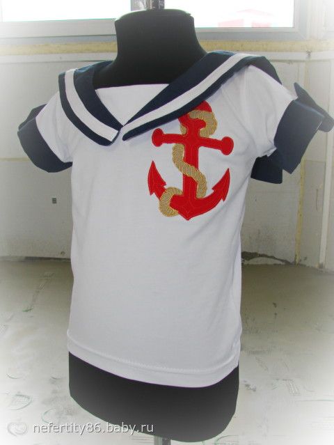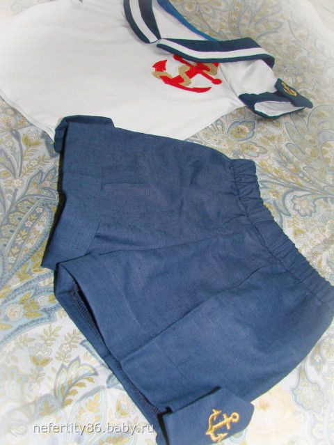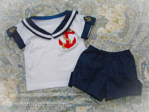 Костюмчик в морском стиле, трикотаж + лён.