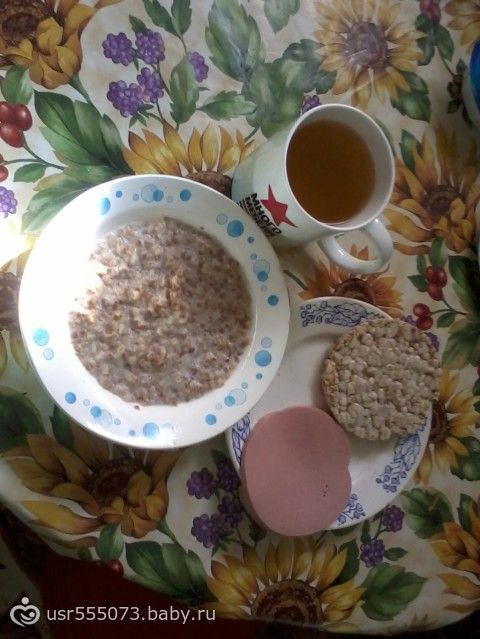 МОЙ ЗАВТРАК: КАШКА ГРЕЧНЕВАЯ, КОЛБАСКА, ХЛЕБЧИК И ЗЕЛЕНЫЙ ЧАЙ