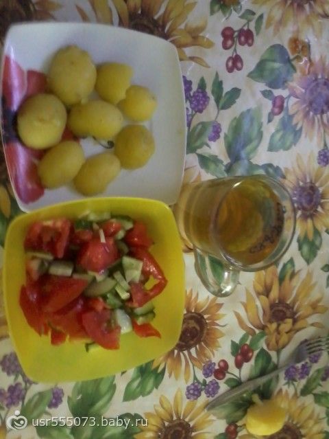 ОБЕД: ОТВАРНОЙ КАРТОФЕЛЬ И ОВОЩНОЙ САЛАТИК, ЗЕЛЕНЫЙ ЧАЕК