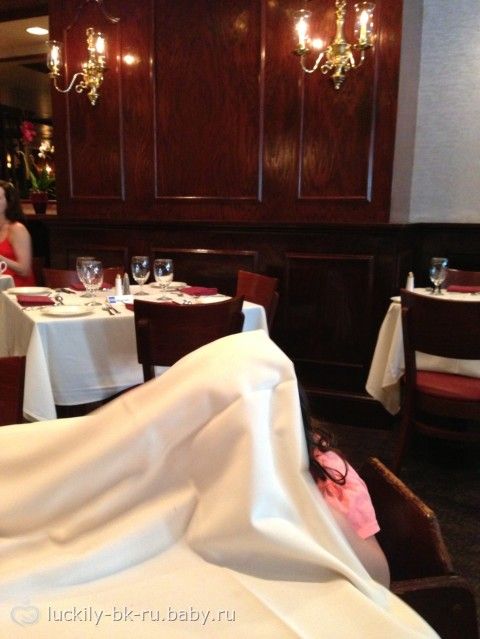 дочку пожелание приятного аппетита не соблазнила и она практически весь ланч просидела под скатертью — отдsхала там после прогулки)))
