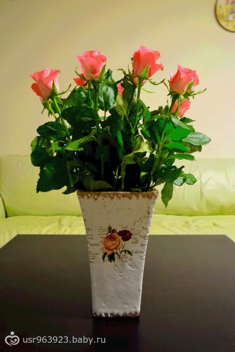 Цветы подарил еще и эту вазочку декупажную, которую я на днях в магазине присмотрела...