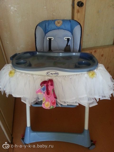 я делала на обычной ленточке) концы закрепляла в столешнице стульчика. Можно и на резинке, лучше держаться будет) идею брала отсюда здесь много чего можно почерпнуть, главное, время и желание