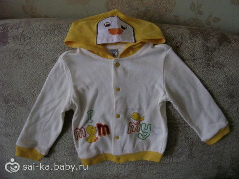 Ну и самая детская вещь Сомневалась брать или не брать… вроде большой уже мальчик)) Но с другой стороны… ребенок же еще — когда еще такое поносит?? К тому же на ощупь очень ткань приятна и мне для поездки нужна была трикотажная кофточка с застежкой спереди — и что то таких не нашла, кроме этой — а она еще и веселенькая такая))