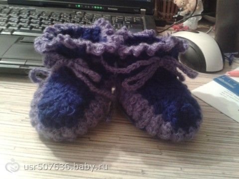 ОГРОМНЫЙ всем привет, я тут вчера села связать маленькие тапочки моему будущему малышу… ну и как говорится первый блин комом… сегодня села перевязать и вот что у меня дорогие мои получилось… ну конечно не белск но у меня даже от вида тапулек этих настроение поднимается…