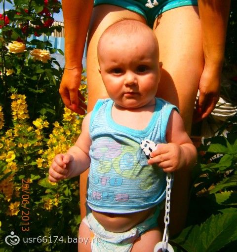 В выходные с ним сходи! Мой тоже с рук не слазиет… а воду увидел и притих!!! Пошлепал ножками в водичке, по песочку походил… вообщем водные процедуры на пользу