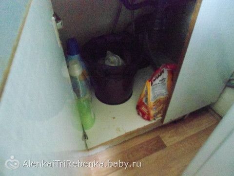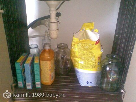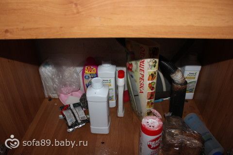 Как дополнительное задание(я просто знаю по себе, что просто не возможно это не сделать начищая раковину) попрошу вас убрать в шкафу под мойкой.Как давно вы туда заглядывали?.. честно говоря, я никогда раньше не замечала потёки на внутренней стороне дверки)))