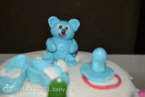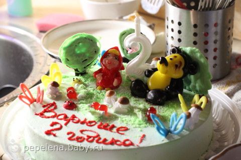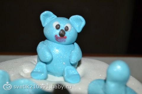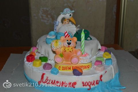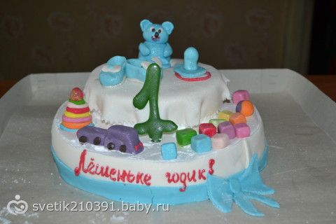 А не такой как нам на годик сделали, что мне переделывать пришлось)Явно пьяные мастера, слепили пьяного медведяРодителям говорю, я такой красивый тортик заказала, я сначала ревела, за час до прихода гостей забирала сие чудо)зато все посмеялись, он был очень вкусный, а медведя до сих пор все вспоминают)Хочу нынче в виде машинки тортик, очень машины обожает, может покажете свои)