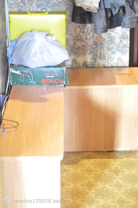 Муж приедет и уберет на антресоль инструмент, я не достану, ну и моя папка необходимая каждый день. Даже собрала пакетик детской обуви в церковь отдать.