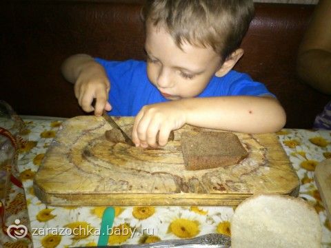 ребенок сам режет, вилкой и ножом он пользуется без травм)