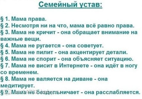 1.мама всегда права 2. если мама не права смотри плавило №1