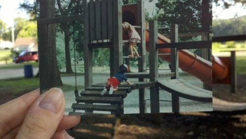 Тейлор Джонс, канадец 21 года от роду, как-то сидел дома и перебирал коробку со старыми семейными фотографиями. Среди них был снимок его младшего братишки, сидящего за кухонным столом. Тейлор вдруг заметил, что перед ним стоит тот же стул, и он сидит за тем же самым столом. Он совместил старый снимок с новым окружением, и ему пришла в голову мысль сделать небольшой блог для друзей, в котором они могли бы выкладывать фотографии, в которых прошлое пересекается с настоящим.