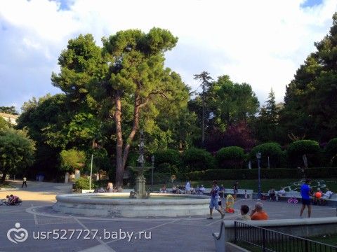 Есть каскад маленьких искусственных прудов, с фонтанами, мостиками, живыми рыбками и черепахами. Удобная площадка для детских игр, центральная аллея со скамеечками и питьевыми фонтанчиками в тени деревьев. Центральная площадь с фонтаном и площадкой для концертов под открытым небом. Вот и почти весь парк на этом. Но для такого города, как Кьети, это уже очень много, ибо рельеф местности не позволяет очень широко развернуться.
