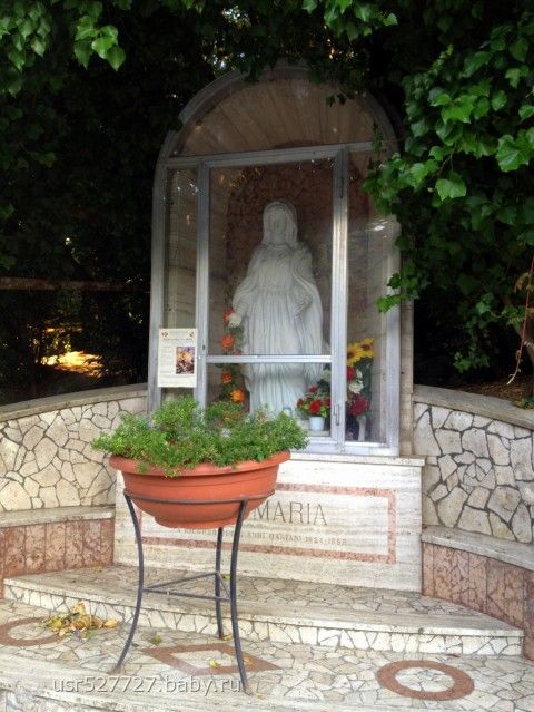 Один из характерных атрибутов любого итальянского города. Статуи Мадонны, Христа и каких-либо местных святых можно встретить в любом месте: большие, маленькие, внутри зданий, снаружи зданий, в парках, на перекрестках дорог, во двориках, в холлах больниц… И всегда рядом цветы и свечи.