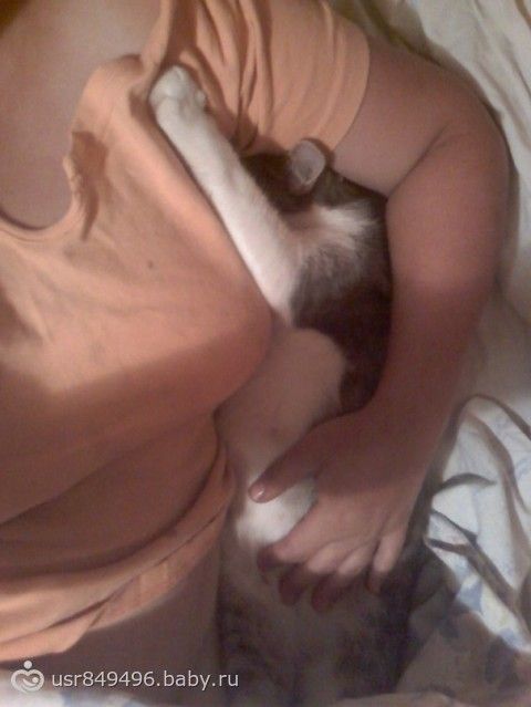 Когда я забеременела, Мурка поняла это первая. Она стала обо мне заботиться)))), перестала наступать на живот, по мере роста Ники гнездилась все выше на грудь, когда я(пардон) сажусь на унитаз, она сидит рядом, очень переживает, что я утоплю своего котенка, обязательно проверяет перед смывом воды, не облажалась ли я. Мыться не дает- опять же — вода — вдруг утоплю?)))) Спасает от стирке в тазике детские вещи, мягкие игрушки… Когда к нам пришла Юлька с Софийкой, легла рядом с мелкой и муррррррчала)))) В общем, ждет появления Никуси не меньше моего)))