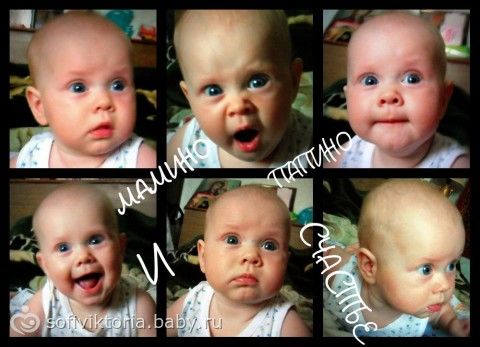 Ну вот и нам… шесть… шесть месяцев моей кнопочке… моему ангелочку… моей конфетке! Мы уже многому научились. Рост у нас 68 см., вес 7800. Умеем хорошо ползать… все комнаты уже «изучили».Садимся сами, правда еще неумело, больше на ножку получается(при этом падаем частенько). Ещё встаем на колени, держась за опору и отпуская при этом одну ручку… болтаем на своем детском… Очень любим общаться с детками… Кушаем грудное молочко, пюрешки овощные и фруктовые… пробовали телятину и курочку(не понравилось). К шести месяцам как-то сам по себе выработался режим сна и бодрствования: спим 2 раза в день, в 22.00 засыпаем на ночь и с одним кормлением, просыпаемся примерно в 7 утра. Вот такие вот у нас дела, милые бебирушечки!!!