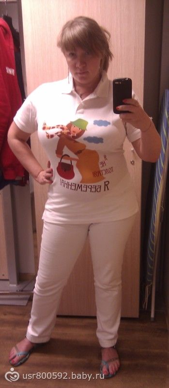 а я сама теперь прошу место уступить, если вижу, что никто не собирается. здоровье ваше и ребенка только в ваших руках, зачем тогда стесняться) идея футболки замечательная, но вам надо верх больше открывать, закрытое поло только увеличивает плечи и делает массивнее грудь. тут лучше глубокий круглый вырез подойдет или узкий от плеча до плеча, но тогда цвет потемнее подобрать.