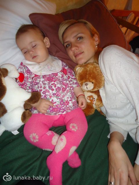 -сама проситься спатки днем, даю ей соску и она сразу укладывается на руках на бок и закрывает глазки, мин 5-10 и она спит… вечером сложнее… ночью ужас...