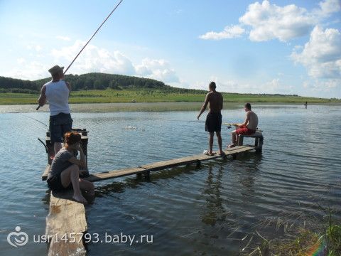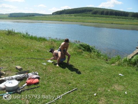 на рыбалке, первую рыб Оля поймала. я тоже рыбачила, но меня ни кто не сфоткал(((