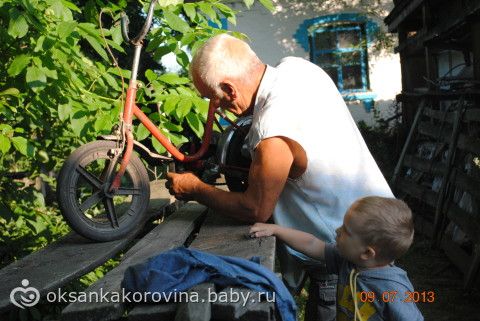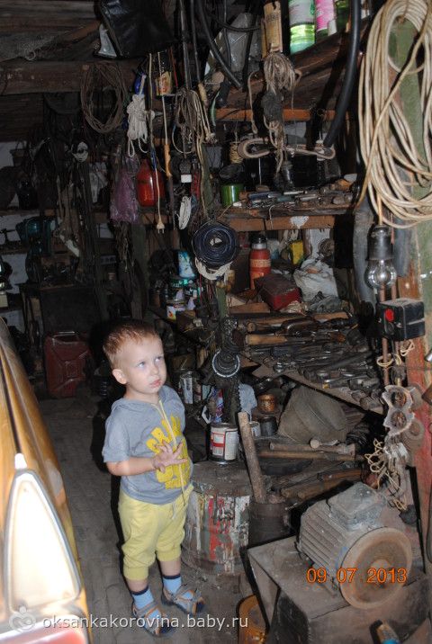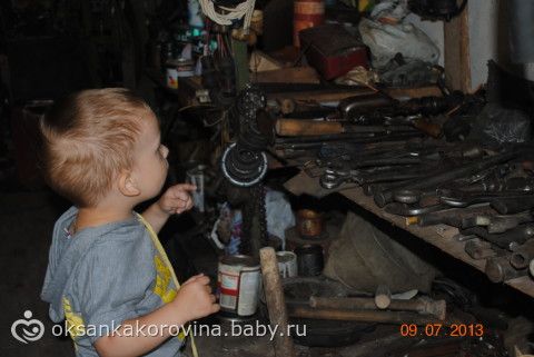 Он вообще у меня любит эту «ремонтную» тему: может пол дня бегать по дому и чинить все, в чем есть гаечки или гвоздики! Так вот, мой дедушка полжизни проработал в колгоспном гараже на разных машинах и «стырено» запчастей и инструментов было не мало! Все это хозяйство храниться в гараже! Вы бы видели Глеба, когда он попал в этот «рай»!!!