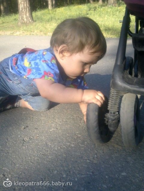 Чужие коляски (а точнее колеса) — его страсть. Невозможно оторвать.