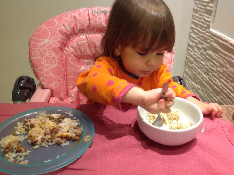 Валюша умница, у нас горох и макароны сразу в рот и по полу летят...