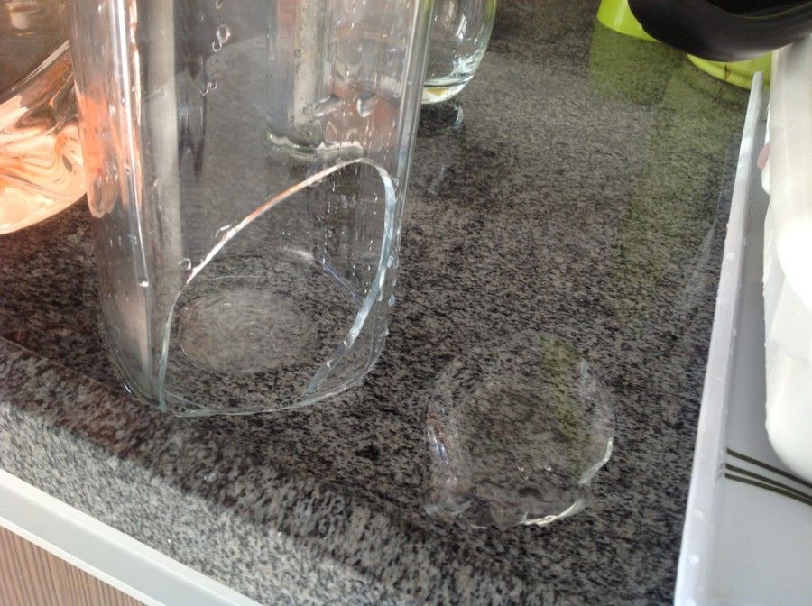 Утром сегодня хотела налить воды в графин, а сбоку отвалился кусок стекла, и вся вода выплеснулась наружу. Никогда не видела, чтобы стееклянная посуда билась вот так. Видимо, была трещинка.
