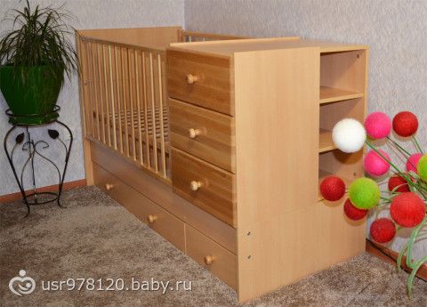 Кроватка прелесть, чемто похожа на нашу, дождусь сегодня сфоткаю и выложу. Принцип такойже только с боку дверцей закрыто и беленькая.