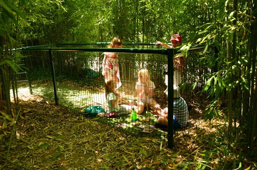 После теплицы мы пошли на площадку детскую, там дети играли в бамбуковом лабиринте, а мы, мамочки, сидели в тени и болтали.