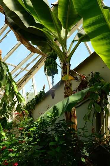 В теплице растут разные экзотические растения, например, бананы. Хотя в Ницце они и без этой теплице растут тоже, но не зреют, здесь недостаточно хорош климат для них.