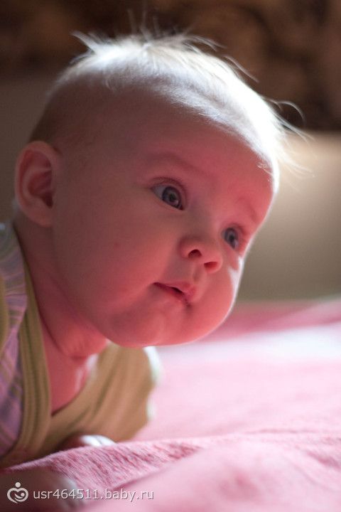 молодец она уже с пузика на животик переворачивается! а мы на пузике ну совсем не любим лежать, хотя ползти уже пытаемся активно.