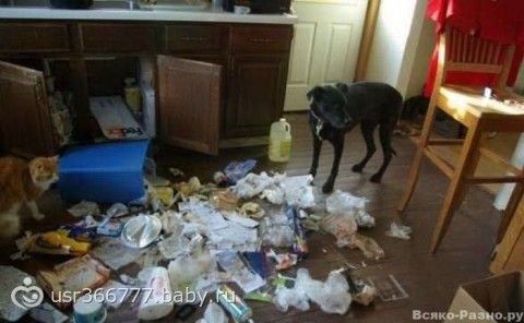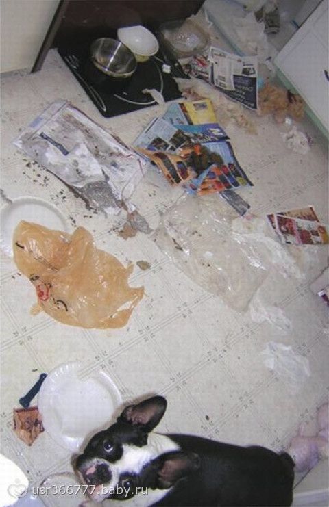 перегрызано было все! мусорный пакет по квартире растаскан, носки, трусы все в клочья