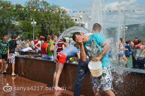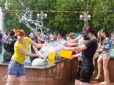 — Проявляй к ближнему больше добра и любви! Скинули в фонтан? Улыбнись. Не надо крыть матом сразу. Для этого организаторами было введено специальное правило: «Если вдруг на обливание или скидывание в фонтан тебя ругают, а уж тем более кроют матом, подойди и обними/поцелуй недовольного»