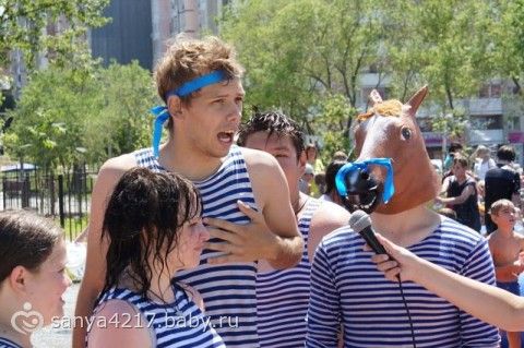 Внимание! Новые условия! На битве две команды! Полосатые футболки и Цветные! 28 июля — День ВМФ! Как произойдет начало битвы: никто никого не обливает, все сухие, все набираем воду, встаем по командам стенка на стенку!!!!!!!.. ИИИИИИииииии… По команде команде… происходит водное столкновение цветных и полосатых!))) Ну а потом как всегда! Водное месиво!.. кстати спасибо всем, кто в прошлный раз отреагировал на просьбу придти в костюмах и масках! Так вот надеюсь все это у Вас осталось! Потому 28-го все должно быть еще красивее и красочнее! Продолжаем искать маски и костюмы и конечно боевые раскрасы, и не важно что через полчаса краска с лица сотрется!… главное — маневры!!!!!!!!))))))))))